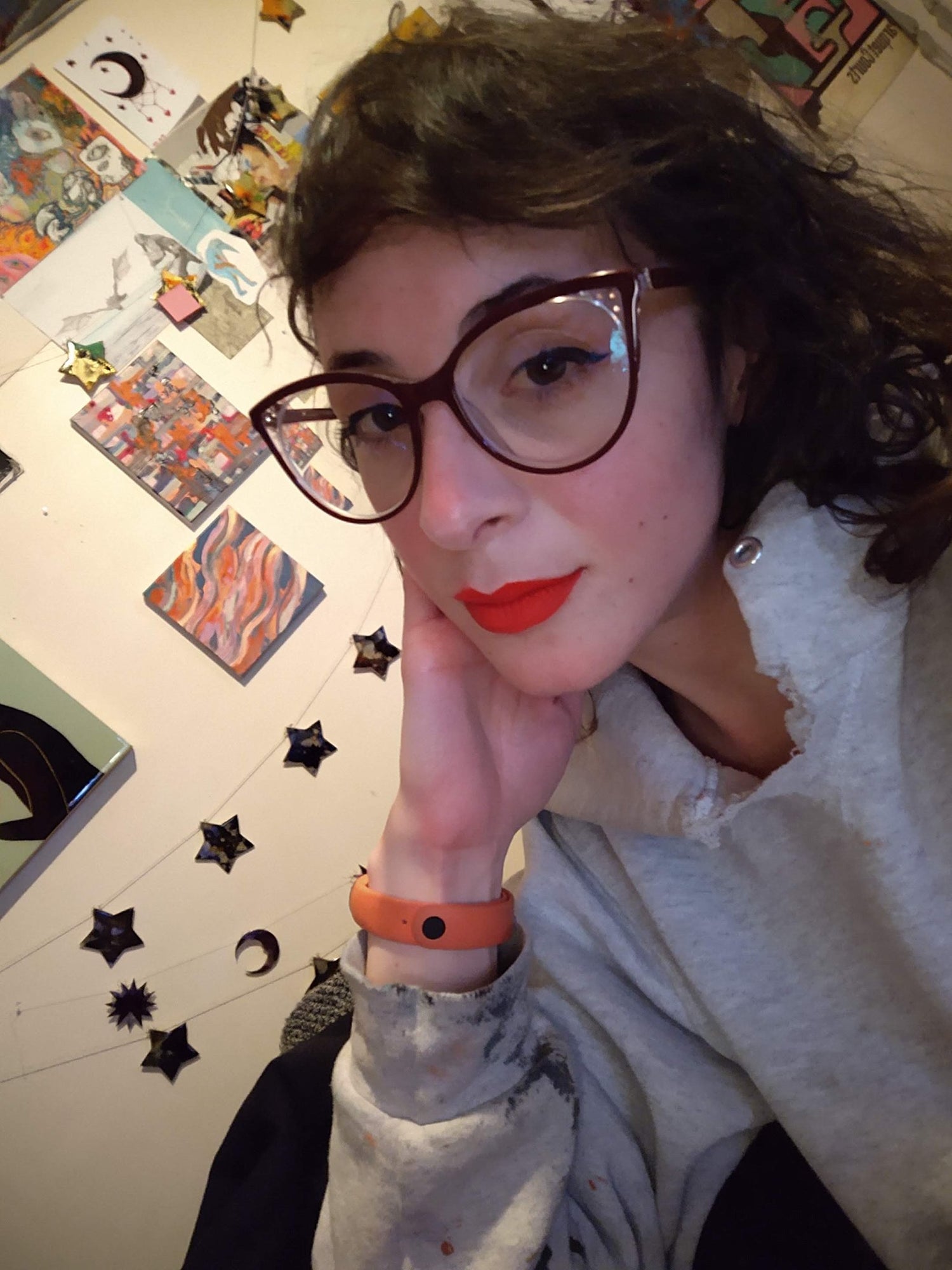 I am a self taught painter from the corner of east TN, where I currently live with my husband and dog! I’ve been making art since I could hold a pen in my hand. All I've ever wanted to do is create, and I've spent my entire life working to make this my reality! I take inspiration from everything all the time, with emotions being the driving force behind my creations. My subjects or whatever I'm obsessed with painting changes based on what's happening in my life. Lately I can't stop painting clouds! Currently I sell my art online via my website or IG, live paint with local bands, and do local markets and commissioned art when possible. I LOVE commissioned work so please feel free to approach me if that is something you're interested in! Finally, since March 2025 I have been the current gallery assistant for Fischman gallery. Mostly my life is consumed by art and frankly I wouldn't want it any other way!