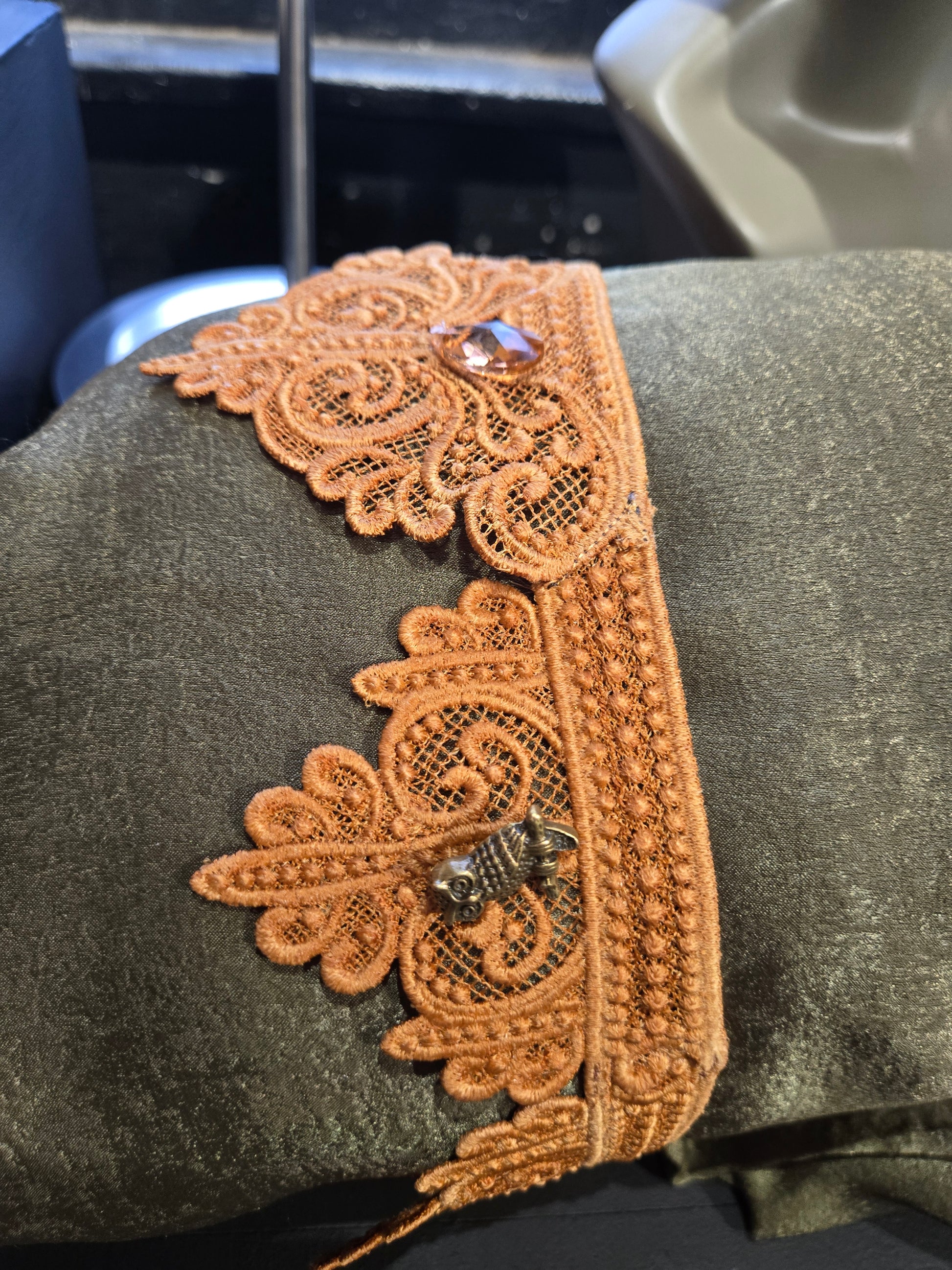 Embrodery thread, glass beads, resin owl