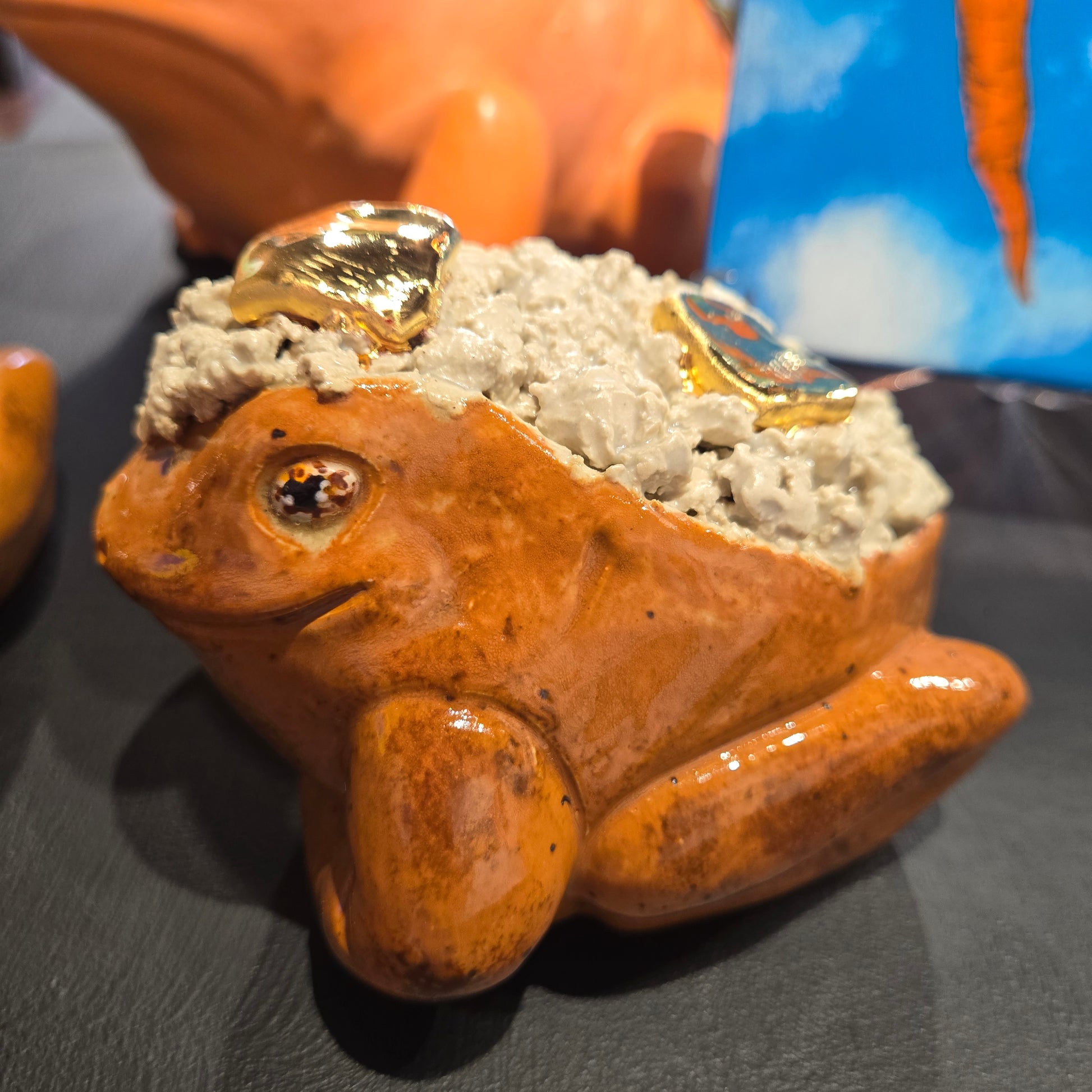 Cast and altered stoneware, topped with 22k golden pats of butter and a satiny glaze